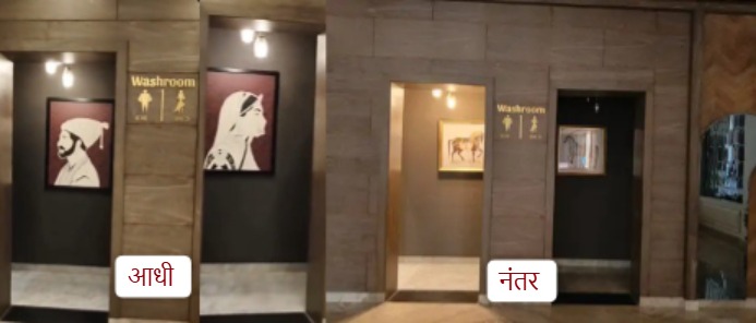 मथुरा रोडवरील ‘मिलन रिसॉर्ट’ मधील प्रसाधनगृहांच्या दरवाजावर महापुरुषांच्या प्रतिमा लावल्याचा व्हिडिओ समाजमाध्यमांवर प्रचंड व्हायरल झाला होता. या घटनेमुळे महाराष्ट्रासह देशभरात संतापाची लाट उसळली होती. शिवप्रेमींनी या कृत्याचा तीव्र निषेध नोंदवत रिसॉर्ट चालकांकडे या प्रतिमा तात्काळ हटवण्याची मागणी केली होती. या मागणीला सकारात्मक प्रतिसाद देत रिसॉर्ट प्रशासनाने छत्रपती शिवाजी महाराज आणि राणी पद्मावती यांचे फोटो तिथून काढून टाकले आहेत. विशेष म्हणजे, या महापुरुषांच्या प्रतिमांच्या जागी आता घोड्यांची छायाचित्रे लावण्यात आली असून, त्याचेही फोटो आता समोर आले आहेत.