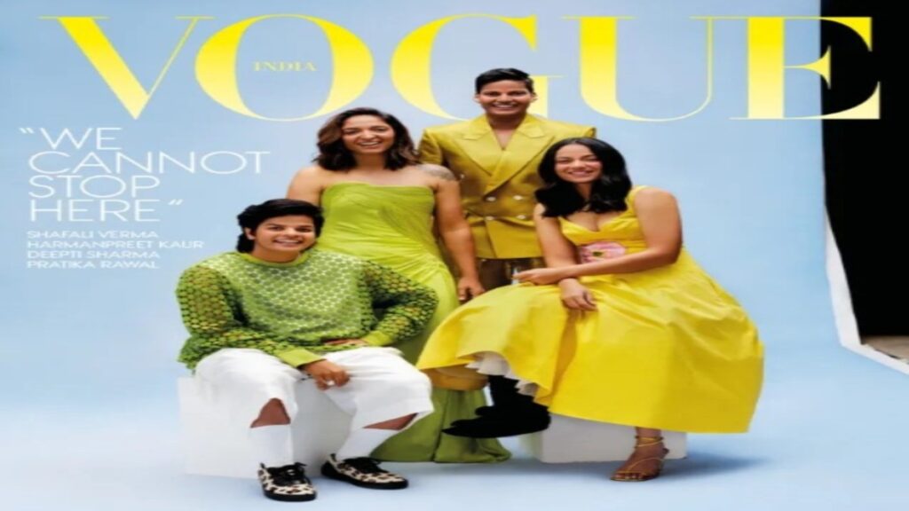 India Women’s Team : वोग इंडिया या भारतातील फॅशन आणि डिझाईन क्षेत्रावरील अग्रगण्य मासिकाच्या मुखपृष्ठावर विश्वविजेत्या भारतीय क्रिकेट संघातील चार महिला खेळाडूंना स्थान देण्यात आले आहे. कर्णधार हरमनप्रित कौर, शेफाली वर्मा, दीप्ती शर्मा व प्रतिका रावल यांचे अत्याधुनिक डिझायनर पेहरावातील छायाचित्र असलेले मुखपृष्ठ वोग इंडियाने आपल्या इन्टाग्राम अकाऊंटवर प्रसिद्ध करण्यात आले आहे. या छायात्रित्राला नेटकऱ्यांनीही भरभरुन प्रतिसाद दिला आहे.
