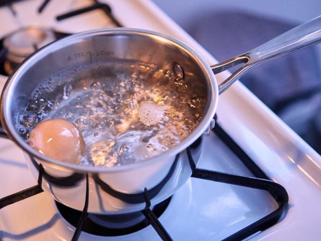 कडक उकडलेले अंडे: १०-१२ मिनिटे; अंडे पूर्णपणे शिजलेले असतात.