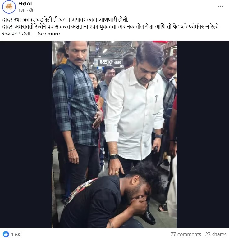 Dadar Railway Station : महाराष्ट्रात सध्या राजकीय घडामोडींना वेग आल्याचे दिसून येत आहे. आता अशातच सर्वच राजकीय स्तरावरील नेते मंडळी कार्यकर्ते सक्रिय झाल्याचे दिसून येत आहे. मात्र या सगळ्या धावपळीमध्ये मन हेलावून टाकणारी घटना समोर आली आहे. एक पोस्ट सध्या सोशल मीडियावर जोरदार व्हायरल होताना दिसत आहे. ज्यात एक तरुण पाय घसरून रुळावर पडला आहे. या घटनेमुळे परिसरात एकच खळबळ उडाली आहे.