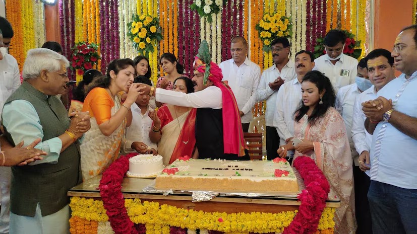 या फोटोयामध्ये खरात यांच्या एका वाढदिवसाला रूपाली चाकणकर या खरात याला केक भरवताना दिसत आहेत. तसेच त्यानंतरच्या फोटोत कॅप्टन खरात हा रूपाली चाकणकर यांना केक भरवताना दिसत आहे.