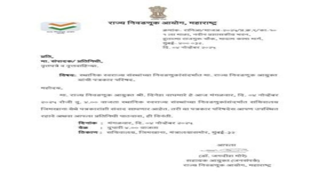 राज्य निवडणूक आयोगाने स्थानिक स्वराज्य संस्थांच्या निवडणुकीच्या पार्शवभूमीवर हि पत्रकार परिषद बोलाविली आहे. आज दुपारी ४ वाजता ही पत्रकार परिषद होणार आहे. यावेळी निवडणुकीची अधिकृत घोषणा केली जाण्याची दाट शक्यता असल्याची देखील माहिती आहे. यानंतर लगेचच महाराष्ट्रात आचारसंहिता लागू होण्याची चर्चा देखील जोरदार सुरु आहे. या काळात कोणतीही लोकप्रिय घोषणा, किंवा विकासकामे केली जाणार नाहीत.