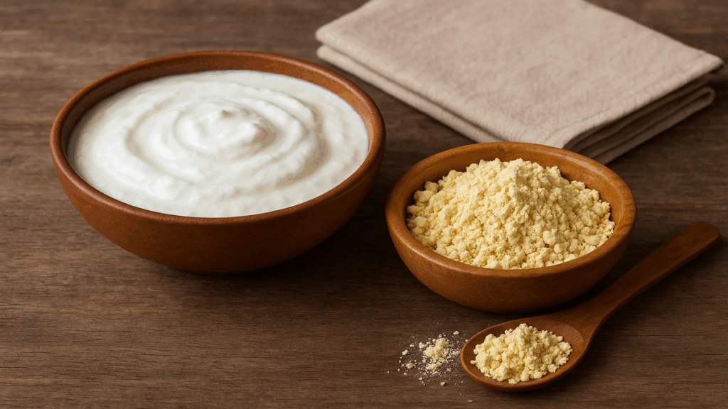 एका वाटीत गरजेनुसार दही घ्या. त्यात एक चांगल्या दर्जाची कॉफी मिसळा. आणि त्यानंतर त्यात हळद मिक्स करा. शेवटी त्यात कोरफडीचा गर मिसळून घ्या आणि १ चमचा किंवा गरजेनुसार बेसनाचे पीठ घालून ते एक जीव करून घ्या. आणि हे मिश्रण चेहऱ्याला लावण्याआधी चेहरा व्यवस्थित स्वच्छ धावून घ्या आणि मग ते चेहऱ्याला लावा. आणि ३० मिनिटाने चेहरा धुवून घ्या. निकाल तुमच्या समोर असेल. तुम्हाला जर स्क्रबिंग करायची असेल तर तुम्ही बेसनाच्या पिठा ऐवजी तांदळाचे पीठ देखील तोंडाला लावू शकता. जेणेकरून तुम्हाला स्क्रबिंग करता येईल.