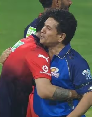 सामना संपल्यानंतर मैदानावर एक भावूक क्षण पाहायला मिळाला. विजयाचा आनंद साजरा करत असतानाच विराट कोहलीने ‘क्रिकेटचा दैवत’ मानल्या जाणाऱ्या सचिन तेंडुलकर यांची भेट घेतली. विराटने सचिनला आलिंगन दिले, तर सचिननेही मोठ्या कौतुकाने विराटची पाठ थोपटून त्याच्या खेळीची प्रशंसा केली. या गुरु-शिष्यांच्या भेटीचे फोटो आणि चित्रफिती सध्या सामाजिक माध्यमांवर प्रचंड वेगाने प्रसारित होत असून, चाहत्यांकडून याला ‘परफेक्ट मोमेंट’ म्हणून संबोधले जात आहे.