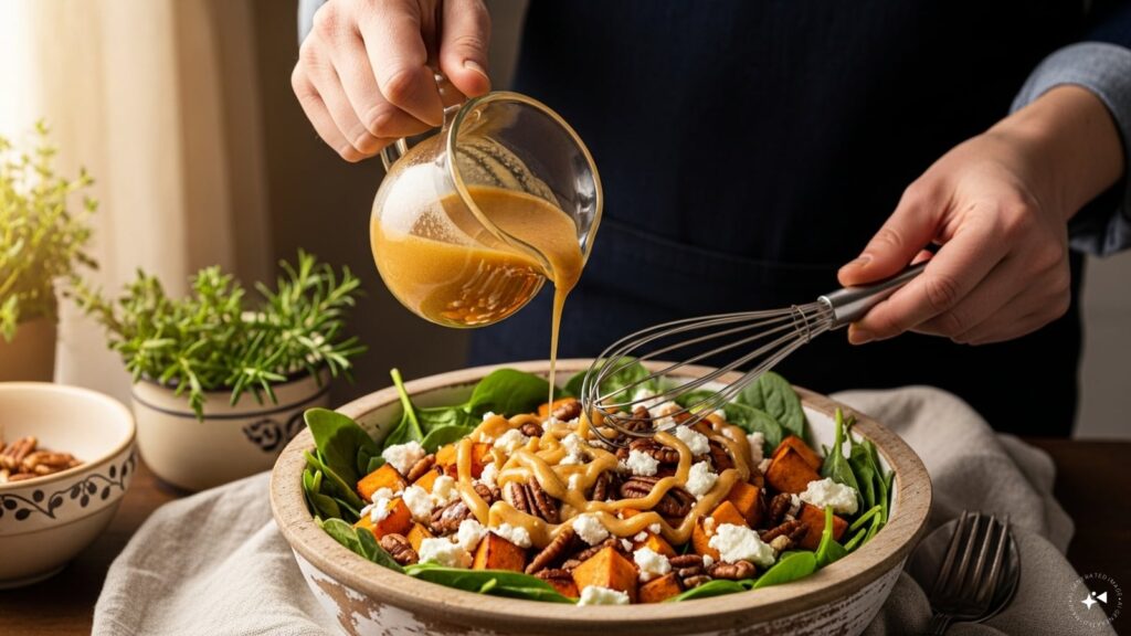 नंतर, वाढण्यापूर्वी ड्रेसिंग घाला आणि हलक्या हाताने मिसळा.