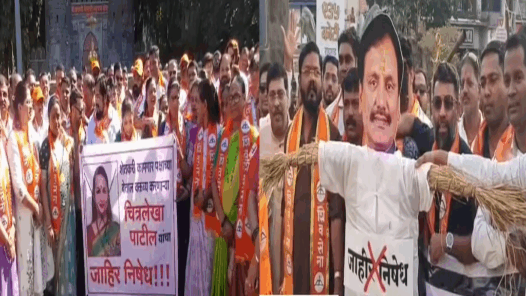 यानंतर राजकीय वर्तुळात मोठी खळबळ उडाली. मंत्री भरत गोगावले यांनी चित्रलेखा पाटील यांच्याविरोधात तक्रार करण्याचा इशारा दिला. आज त्यांच्या समर्थकांनी चित्रलेखा पाटील यांच्या प्रतिमेला जोडे मारत, जोरदार घोषणाबाजीसह निदर्शने केली.
