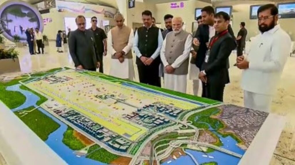 New mumbai airport- पंतप्रधान नरेंद्र मोदी यांच्या हस्ते आज नवी मुंबई आंतरराष्ट्रीय राष्ट्रीय विमानतळाचे (New mumbai airport) उद्घाटन झाले. हे विमानतळ दोन महिन्यांनी सुरू होणार आहे. मुंबई भुयारी मेट्रो लाईन -3, मुंबई वन अॅप आणि तंत्रज्ञान आधारित कौशल्य प्रशिक्षण कार्यक्रमाचेही त्यांनी उद्घाटन केले. उद्या ते मुंबईत फिन्टेक कार्यक्रमात सहभागी होतील. आजच्या कार्यक्रमात मोदींनी सांगितले की, यानंतर वाढवण बंदर आणि तिसरी मुंबई हे लक्ष्य असणार आहे.