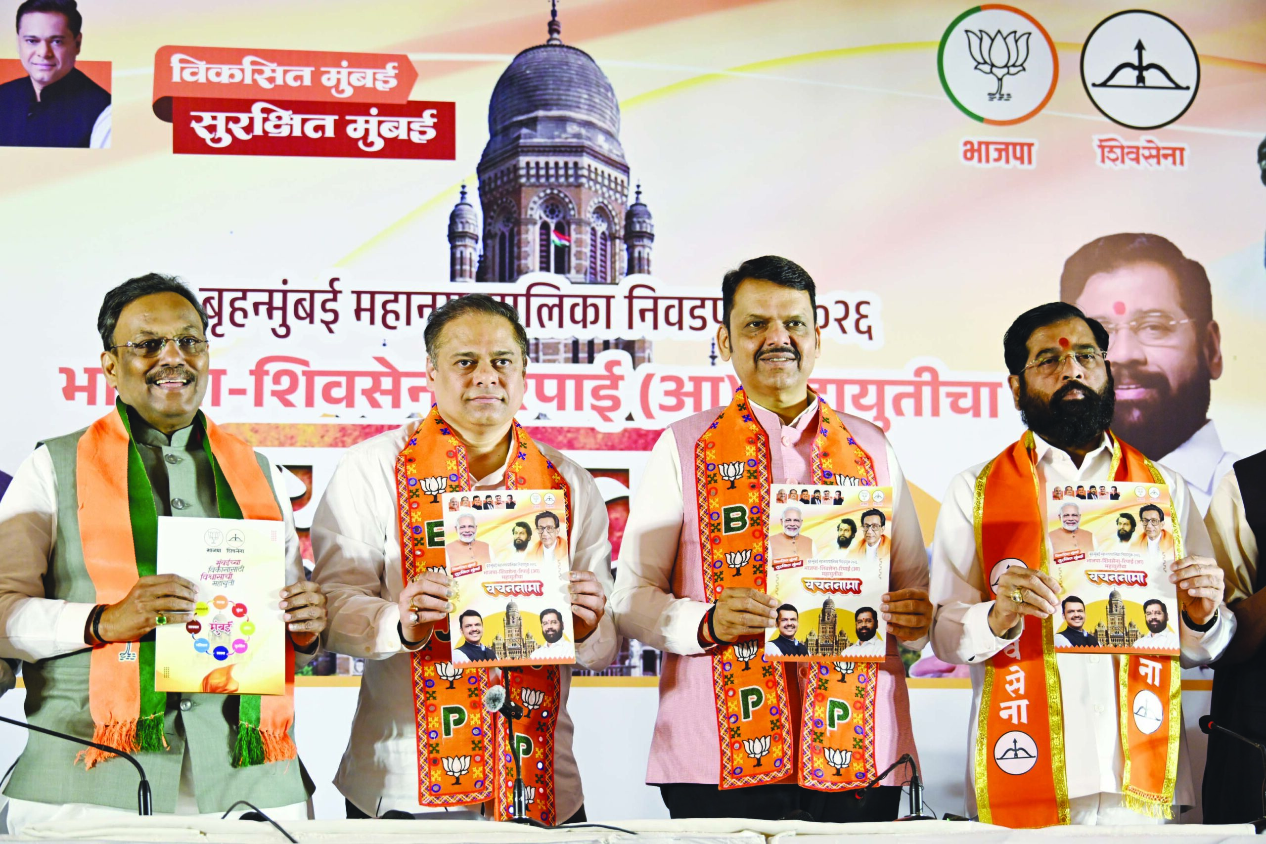 Mahayuti Manifesto BMC Election 2026 : फडणवीस-शिंदेंचा मुंबईकरांसाठीचा वचननामा जाहीर; केल्या ८७ मोठ्या घोषणा