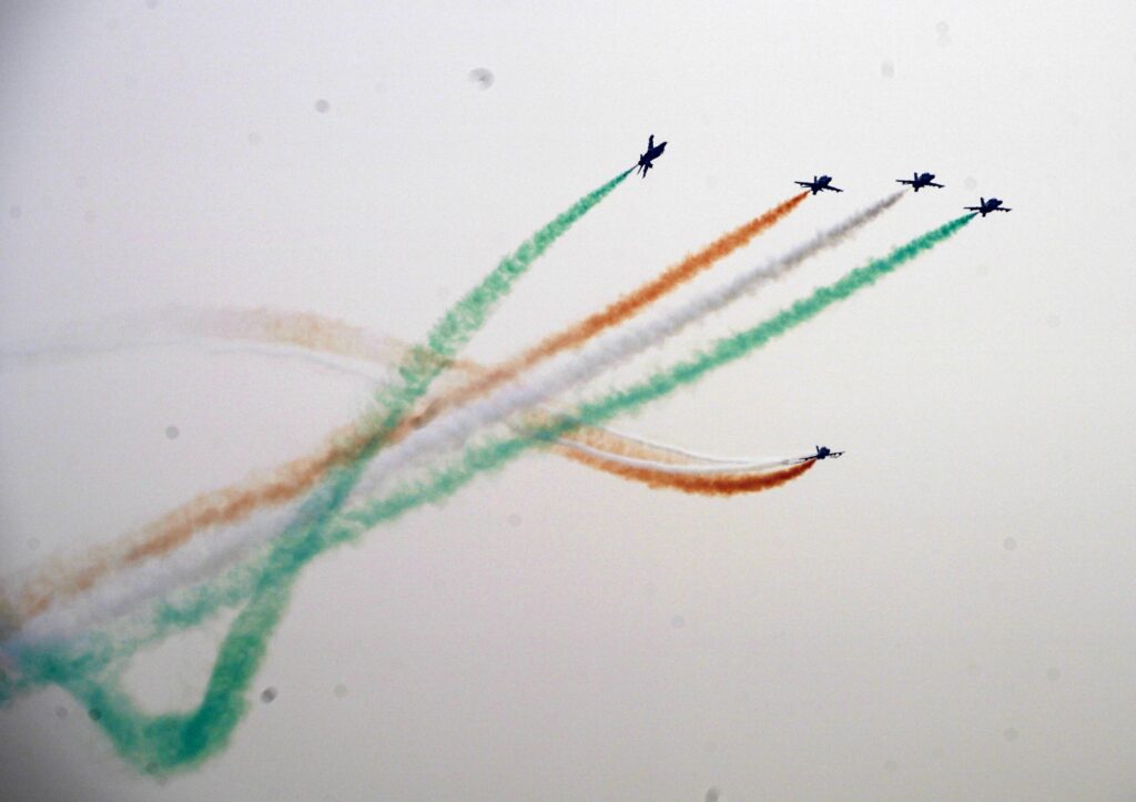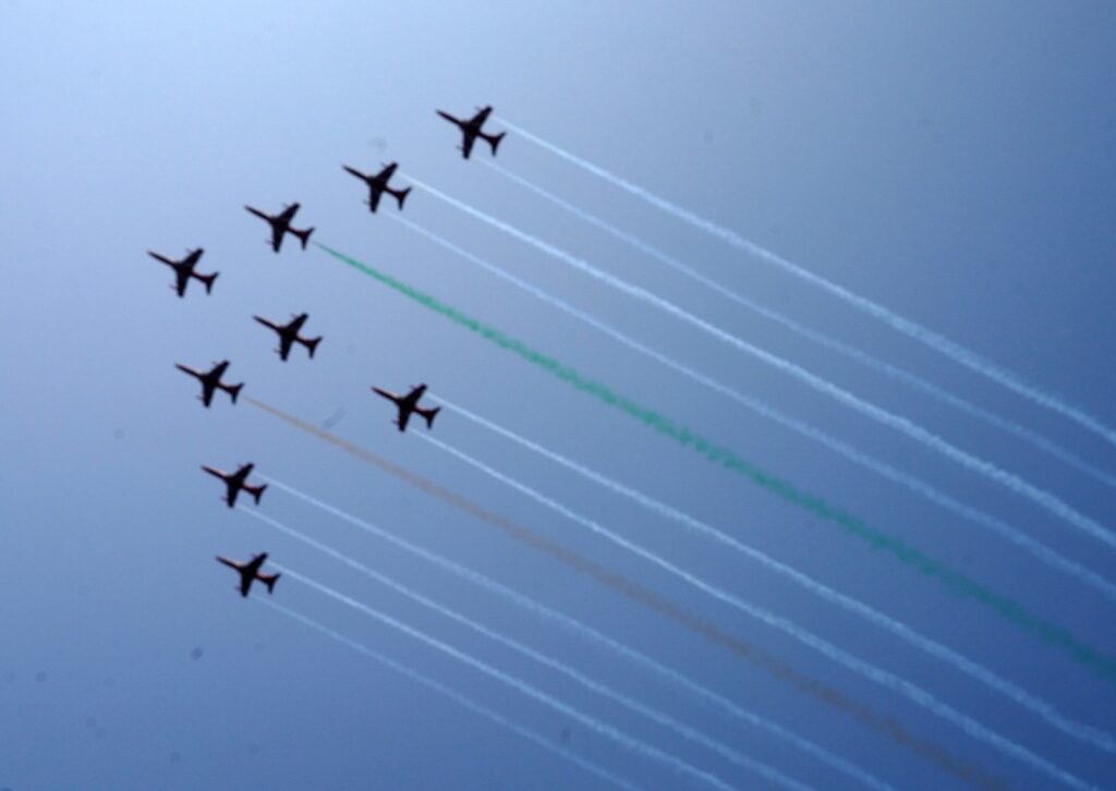 एरोबॅटिक संघाच्या धाडसी उड्डाणांबरोबरच पोलीस बँडच्या गजराने परिसर दुमदुमून गेला. देशभक्तीपर गीतांच्या सूरांनी वातावरण अधिक उत्साहपूर्ण बनवले. प्रत्येक उड्डाण, आकृती आणि घुमाव प्रेक्षकांसमोर कौशल्याचे दर्शन घडवत होते, तर एरोबॅटिक संघाच्या सदस्यांची समन्वित कामगिरी पाहून सर्वांचे कौतुकाचे शब्द ऐकायला मिळाले.